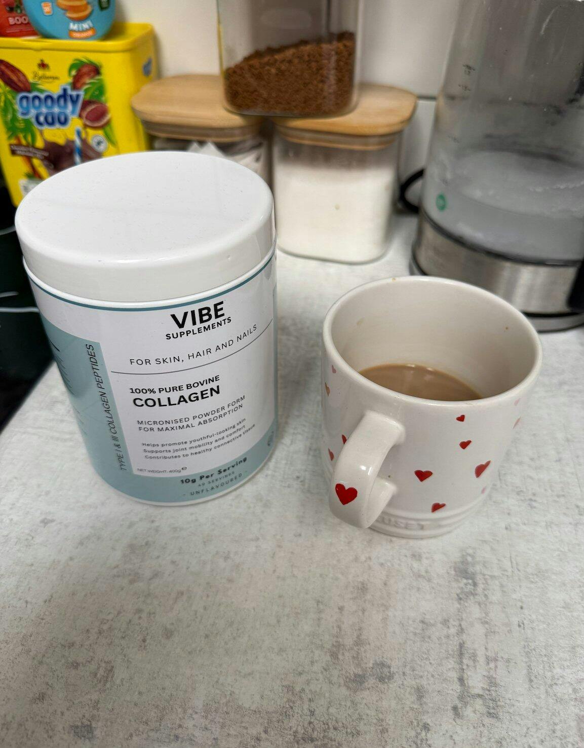 I’ve tried quite a few collagen supplements over the years, but this one really stands out as one of the best. From the moment it arrived, I was impressed. The delivery was prompt, and the packaging was secure and well-designed, with a sturdy, high-quality container that makes storage easy and keeps the powder fresh.The collagen itself is finely milled and mixes effortlessly into both hot and cold drinks—no clumps or weird textures, which is a big plus. I’ve added it to coffee, smoothies, and even just water, and it tastes surprisingly pleasant—mild, clean, and easy to enjoy daily without any aftertaste.You can tell it’s a premium product: the scoop included is well-sized and accurate, and the overall presentation and quality give confidence that you’re using something that’s been well thought-out from start to finish.After a few weeks of consistent use, I’ve already noticed improvements in my skin, nails, and joints. It’s genuinely made a difference, and I’ll definitely be repurchasing.Highly recommend this if you’re serious about your health and want a reliable, effective, and great-tasting collagen supplement. A real gem.